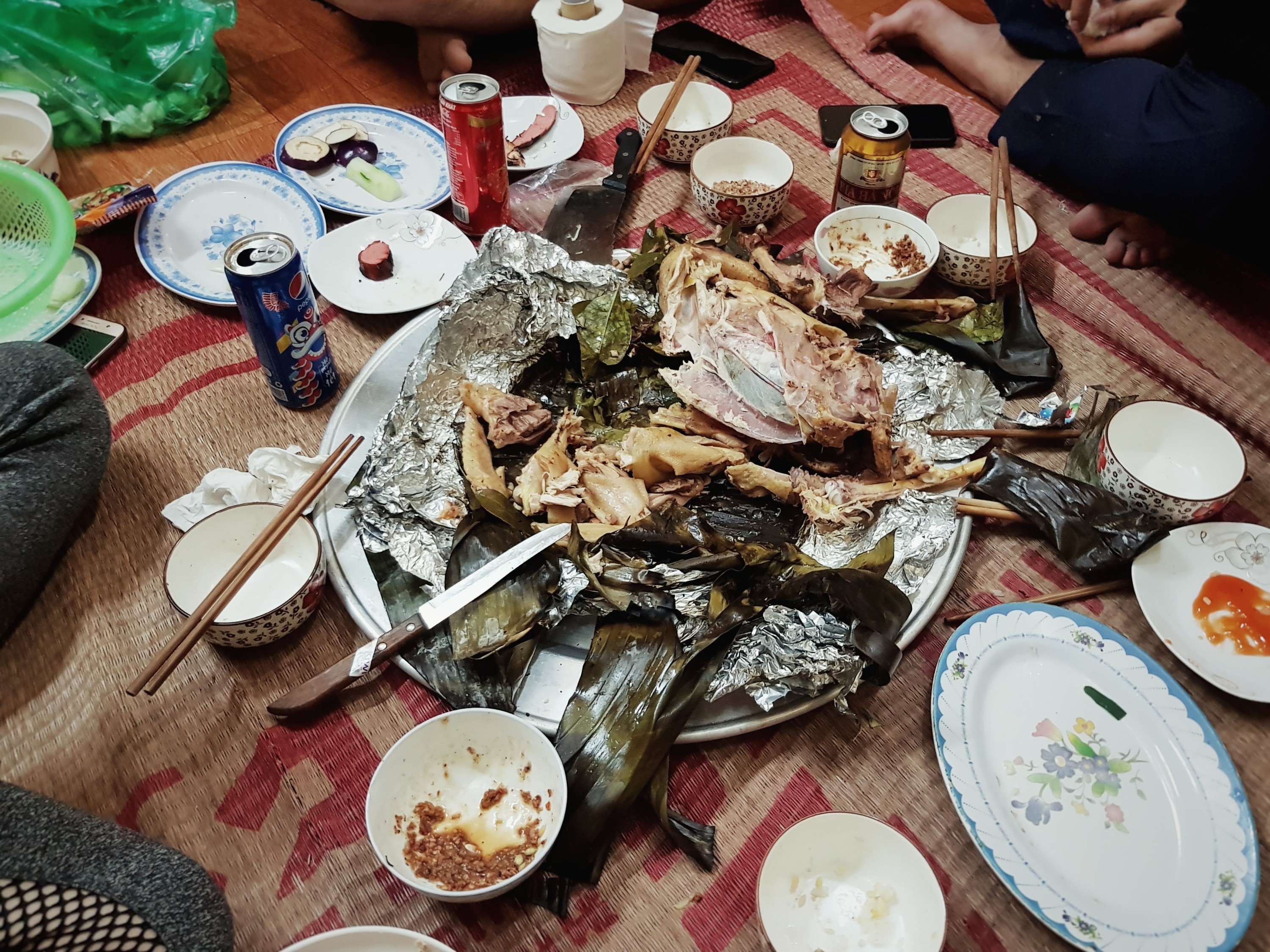 Aber ich erzähle erstmal von meinem 2.Tag in Vietnam. Ich bin erstaunlich ausgeschlafen aufgewacht, dafür das ich um 6:30 geweckt wurde und ich ohne Decke auf einem Brett geschlafen habe (so hat es sich jedenfalls angefühlt). Nach dem Aufstehen sind wir ein bisschen durchs Dorf gelaufen und haben bei einer kleinen Garküche gefrühstückt. Ich weiß gar nicht wie ich es beschreiben soll, ich war in einer anderen Welt und dieses Dorf ist genau das gewesen was man sich vorstellt wenn man an ein Ländliches Dorf in Vietnam denkt. Nach dem Frühstück, es gab Schweinefleisch in Fischsoße und Reisnudelrollen und dazu hat man Minze gegessen und ich muss sagen es war gar nicht Mal so schlecht!