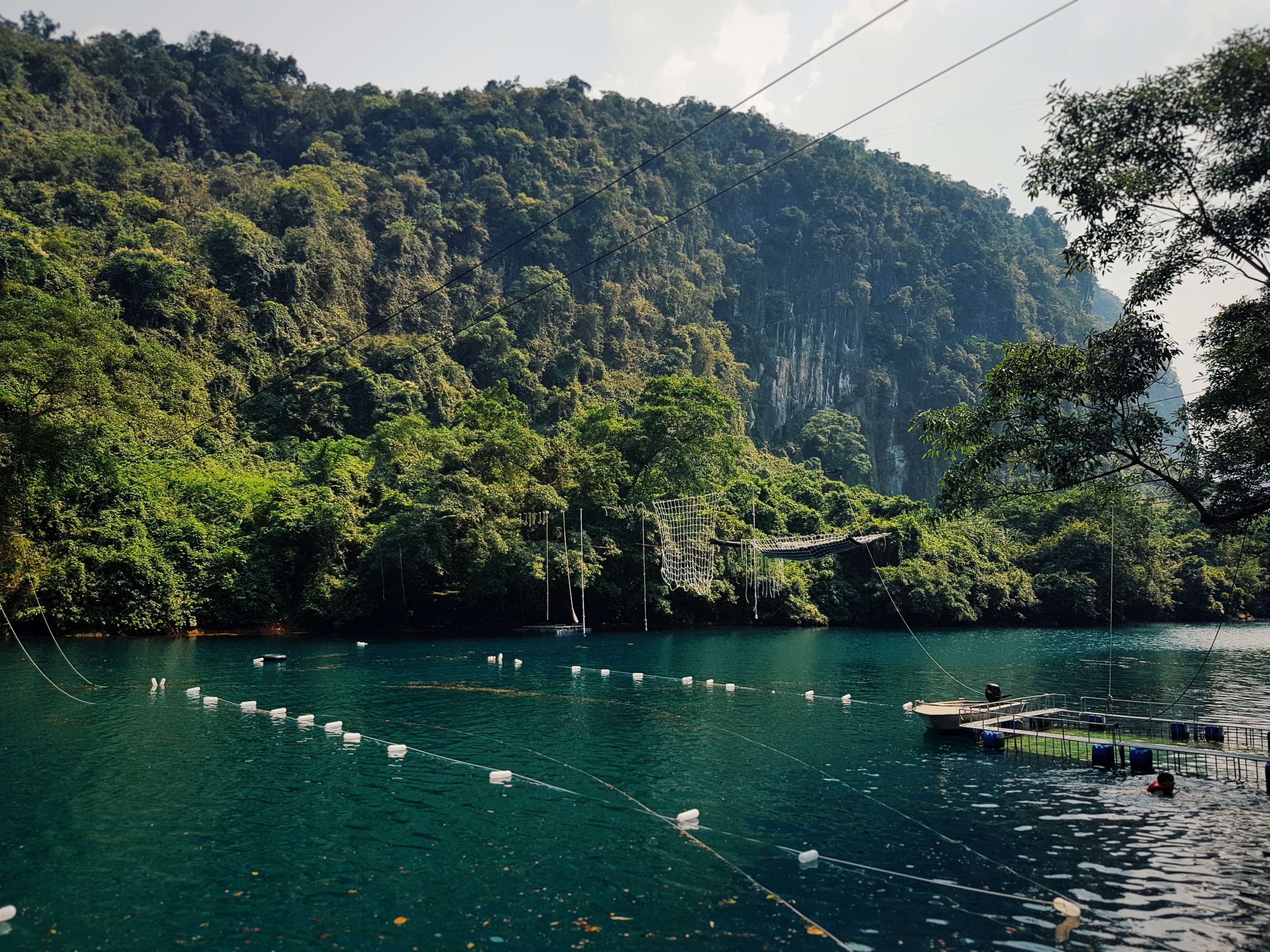 Die Dark Cave ist so eine Art Erlebnis Hotspot und ich erzähle einfach Mal ein bisschen von meinem Trip um und in die Dark Cave. Es fängt an mit der Längsten Zipline von der einen Seite des Flusses zur anderen. Dort angekommen ging es Schwimmend weiter bis in die Höhle, da manche Vietnamesen nicht schwimmen können wurden wir alle mit Rettungswesten ausgerüstet. Weiter ging es in die Dark Cave, ich wünschte ich hätte Fotos machen können obwohl man sowie so die Atmosphäre in dieser riesigen Höhle zu sein niemals hätte einfangen können. Mit Stirnlampen und Barfuß ging es immer tiefer in die Höhle und ich glaube am tiefsten Punkt waren wir ca 700m im Berginneren. Hab ich schon erwähnt das tief im Inneren des Berges ein Matschpool war. Während des Badens haben wir uns entschlossen dort das Licht unserer Stirnlampen aus zu machen und plötzlich ging die größte Matsch Schlacht in der ich jemals war los! Ich werde den Matsch nie wieder aus meiner Badehose raus bekommen! Abgeschlossen wurde der Trip durch eine kleine Bootsfahrt zurück zum Zentrum und dem kleinen dort gelegenen Wasserpark mit Zipline und Kletterstrecke über dem Wasser. Ich bin leider dort am vorletzten Hindernis gescheitert und aus ca 4 Metern in das wundervoll kalte Wasser gefallen.